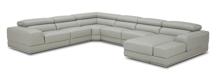 Modern Leather Sectional Grey Color Top Grain Leather Front/Eco Leather Back Modern Style Some Assembly Required