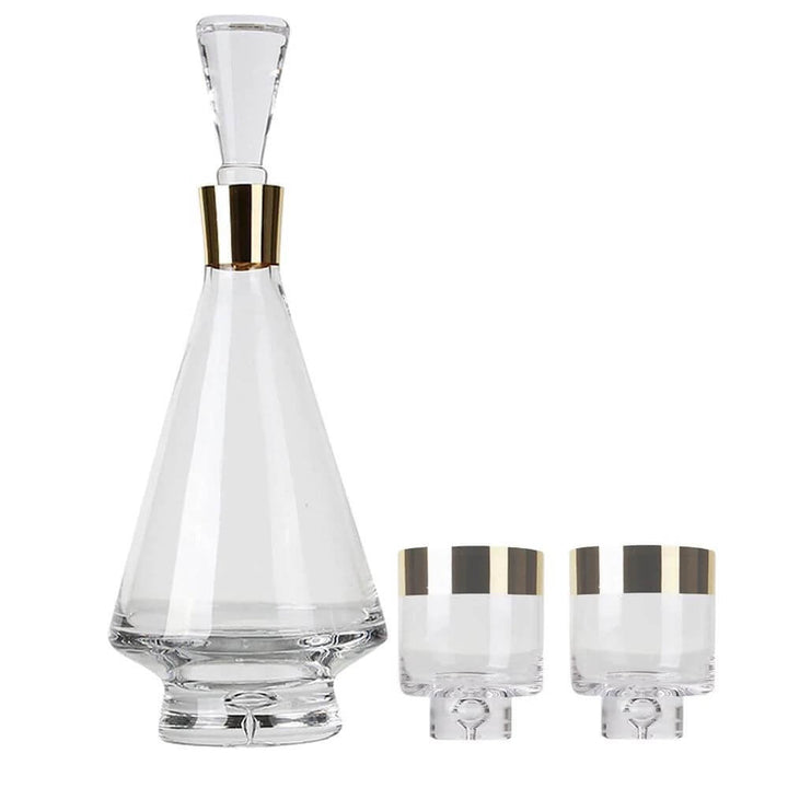 3pc Luxury Bubble Clear Wine Cup & Glass Bottle Set Gold