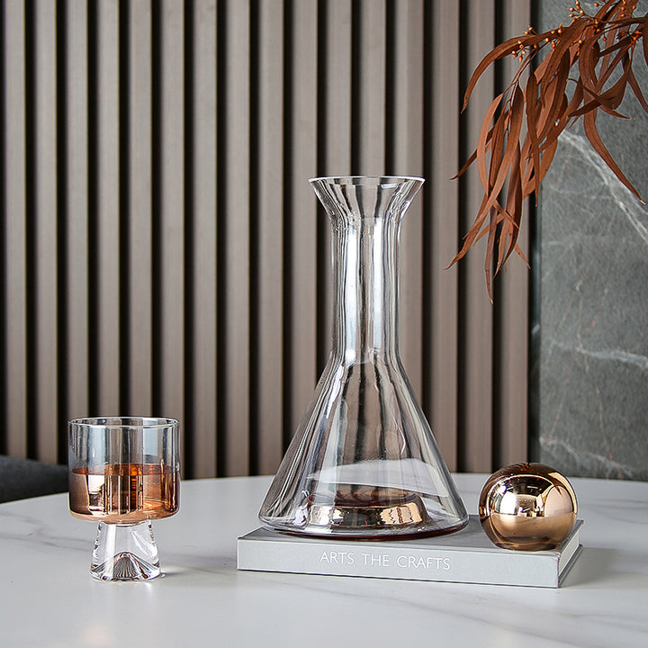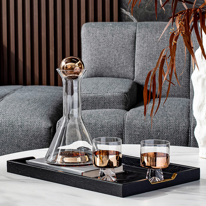 3Pc Luxury Rose Gold Glass Wine Bottle & Cup Whiskey Decanter Set