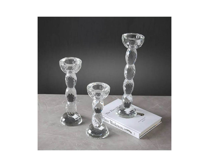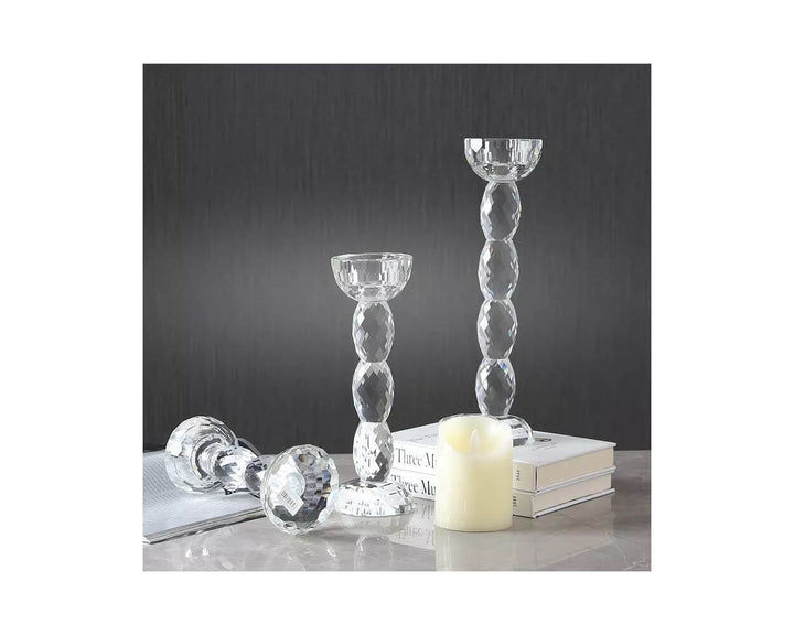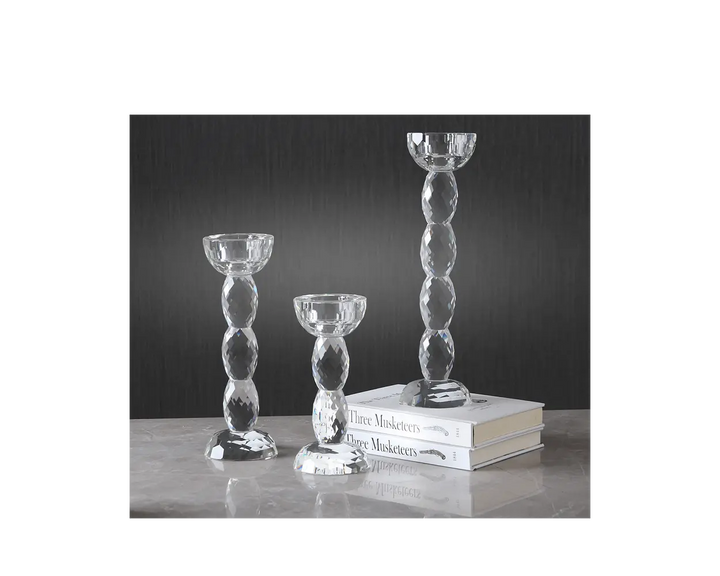 The sleek lines and shapely silhouettes from LottéLuxury Design's assorted crystal candle holder collection gleam in the glow of candlelight.