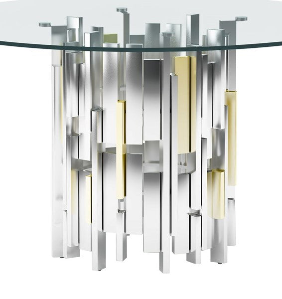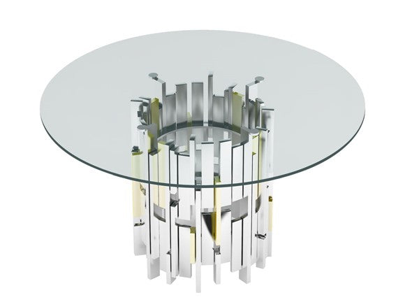 53" Bolvardi Round Glass with Steel & Gold Design Table