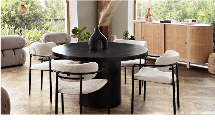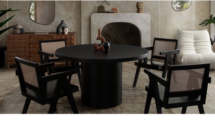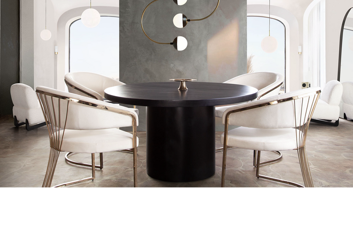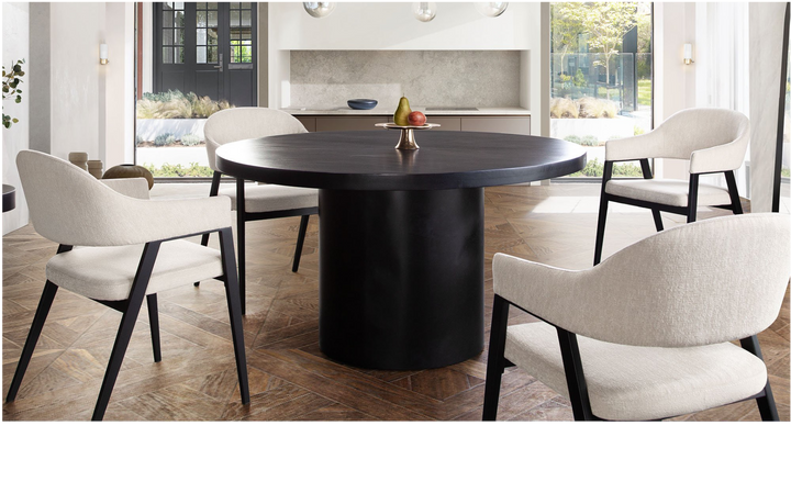 Palomar 54" Round Dining Table features a Solid Acacia Wood Top with 2" Thick Apron in Black Finish set atop Black Iron Pedestal Base. Perfect addition to any dining room or entryway with its timeless look and mixture of wood and metal. 54 Inch x 54 Inch x 30 Inch Solid Acacia Round Wood Top w/ 2" Apron in Black Finish Rolled Iron Pedestal Base in Black Finish Functional & Stylish Addition to Any Room's Décor Some Assembly Required