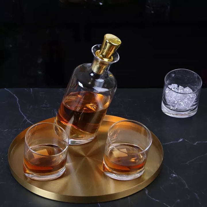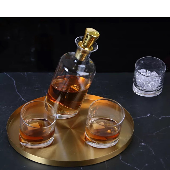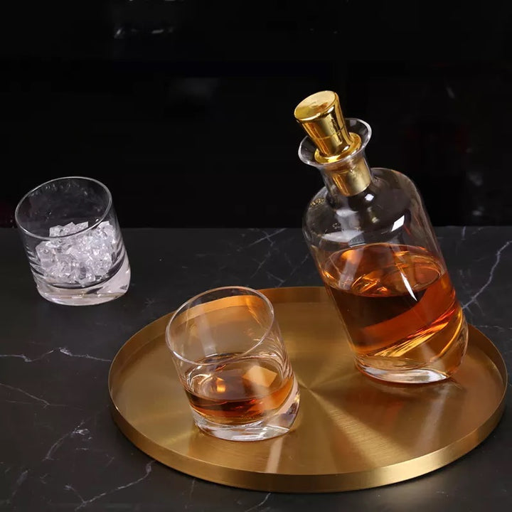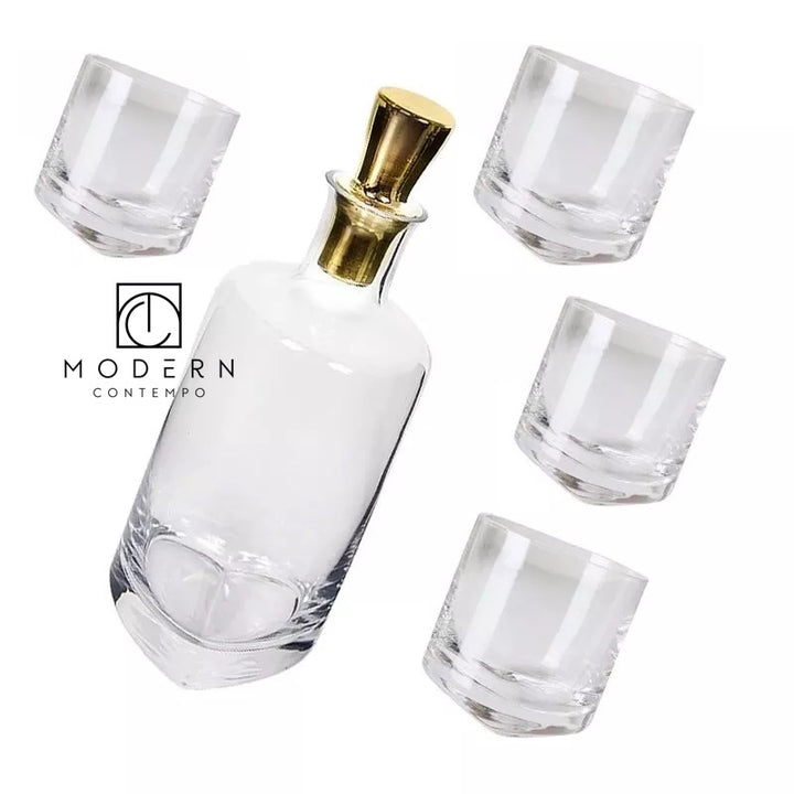 5Pc Luxury Glass Wine Bottle & Cup Slant Wine Glass Table