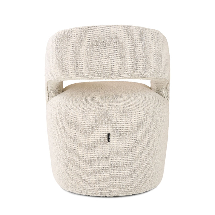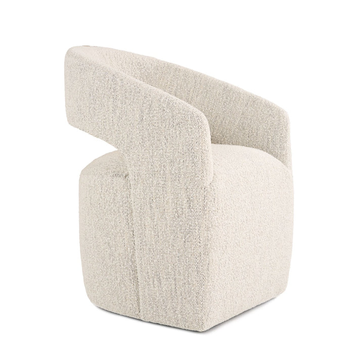 Our Astoria Accent Chair has a simple silhouette and contemporary aesthetic with clean lines. With sleek, inviting contours and cut out back that makes for an Art Deco feel. Foam wrapped in a textured cream fabric makes this a desirable choice to brighten any room.