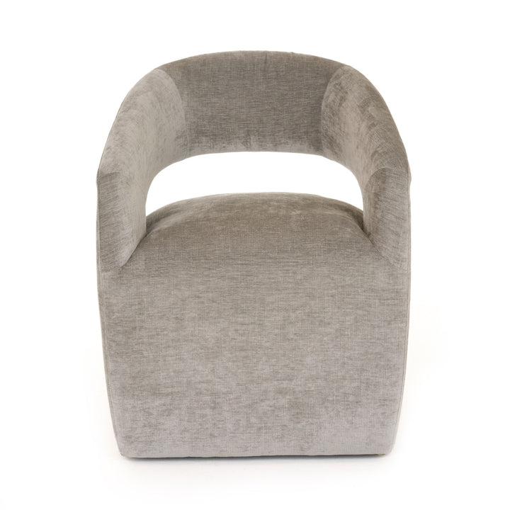 Our Astoria Accent Chair has a simple silhouette and contemporary aesthetic with clean lines. With sleek, inviting contours and cut out back that makes for an Art Deco feel. Foam wrapped in a textured cream fabric makes this a desirable choice to brighten any room.