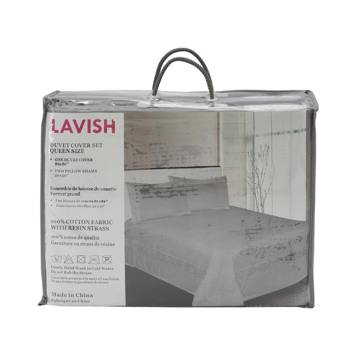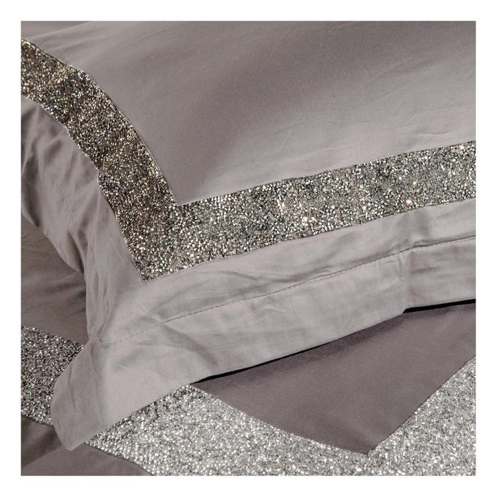 Auriel Light Grey Duvet Cover Set with crystals KING
