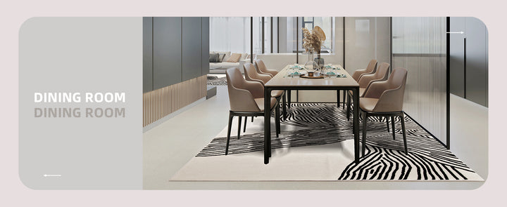 A study in contrast and contemporary design, the Zara Noir Rug brings bold movement and refined elegance to any space. Crafted from ultra-soft, premium fibers, its low-pile texture offers comfort and durability suited for modern living.