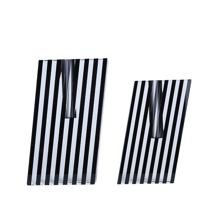 Liven up any room with this statement-making large crystal trapezoid bud vase! Its sleek black and clear design will add a touch of glamour to your home, making it the perfect accessory to showcase your favorite flowers. Get ready for all the “oohs” and “aahs”!