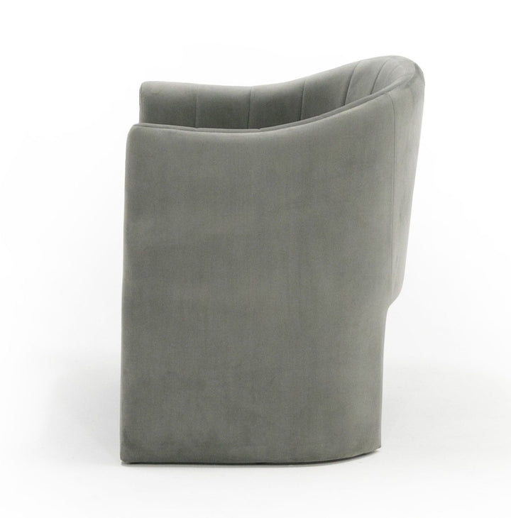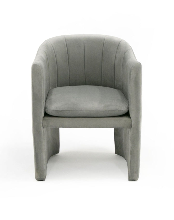 The Boutique Modern Dining Chair is a perfect collection of curvilinear lines and Grey velvet upholstery to stimulate the eye of its beholder. The modern shape is offset by the mid-century upholstery. Perfect with a walnut dining table to create a stylish dining experience.