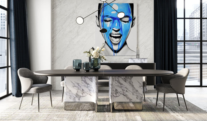 Broxburn - Modern Black Oak + Faux Marble Oval Dining Table