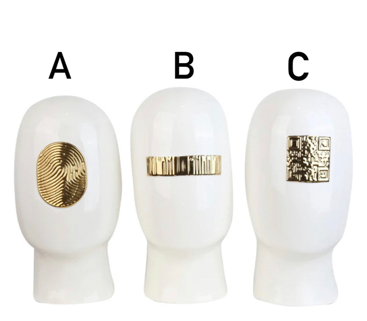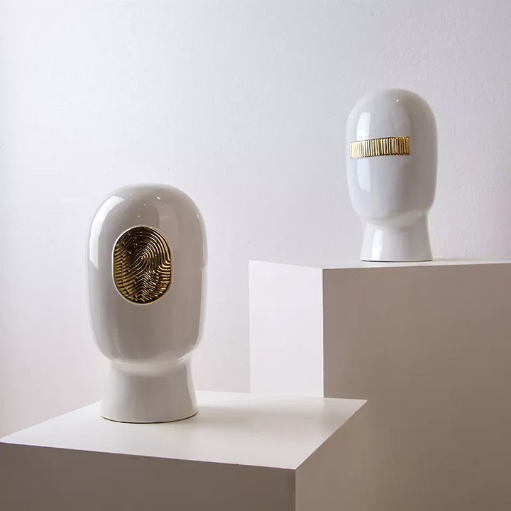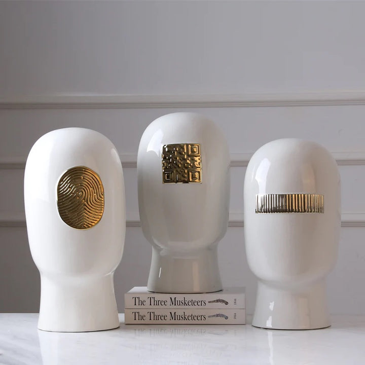 Code Faces White & Gold Ceramic Abstract Human Head Set