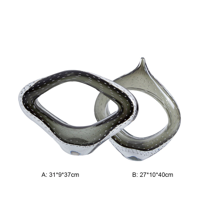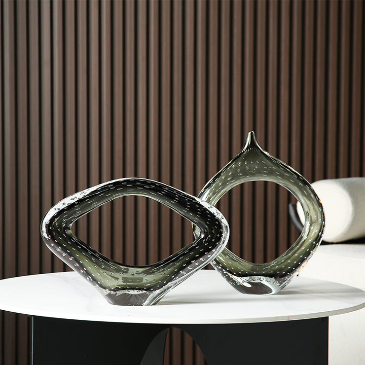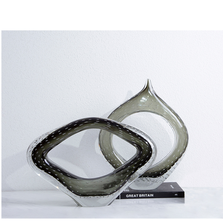 Contemporary Smoke Grey to Clear Glass Sculpture . Available in your choice of rose gold or chrome tinted glass, this set makes the perfect housewarming or wedding gift. * Product Color May Slightly Vary Due to Photographic Lighting
