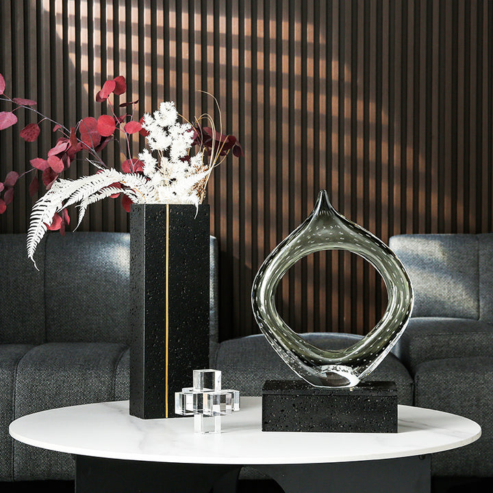 Contemporary Smoke Grey Abstract Glass Sculpture