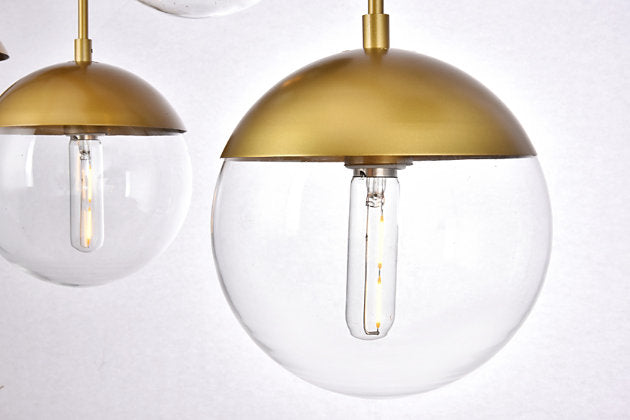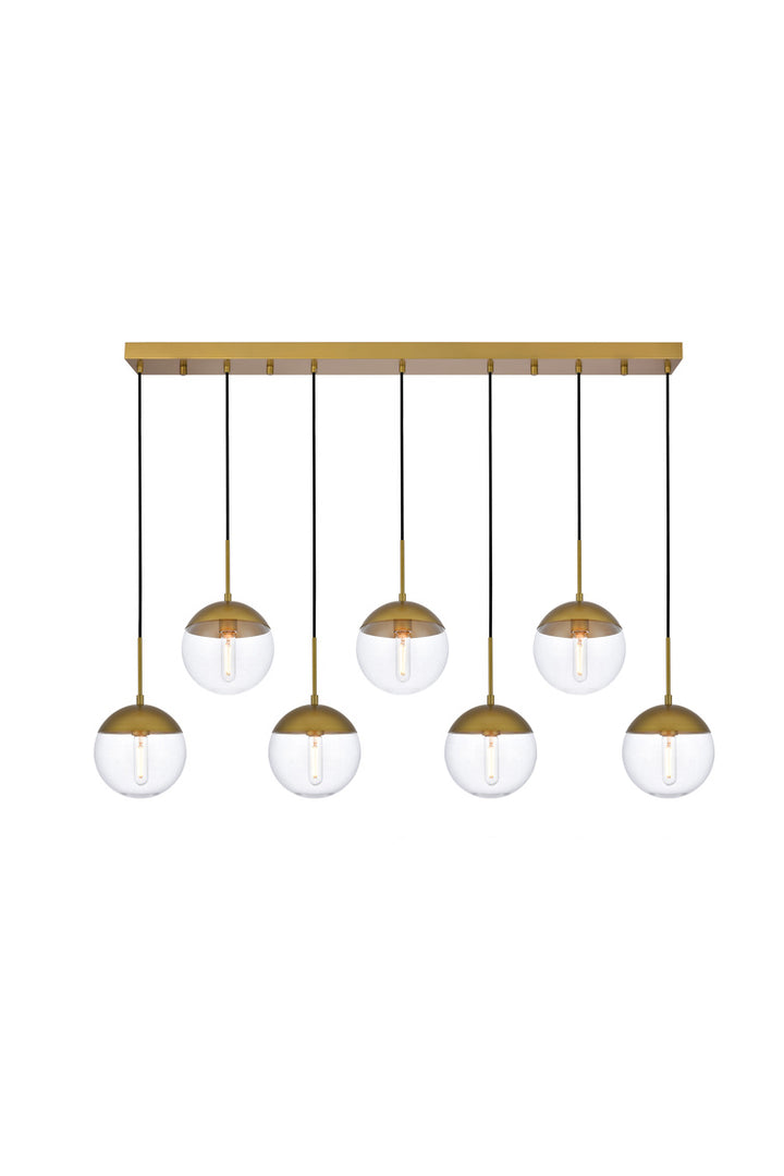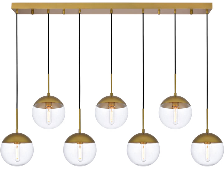 Solar 7 Lights Brass Pendant With Clear Glass