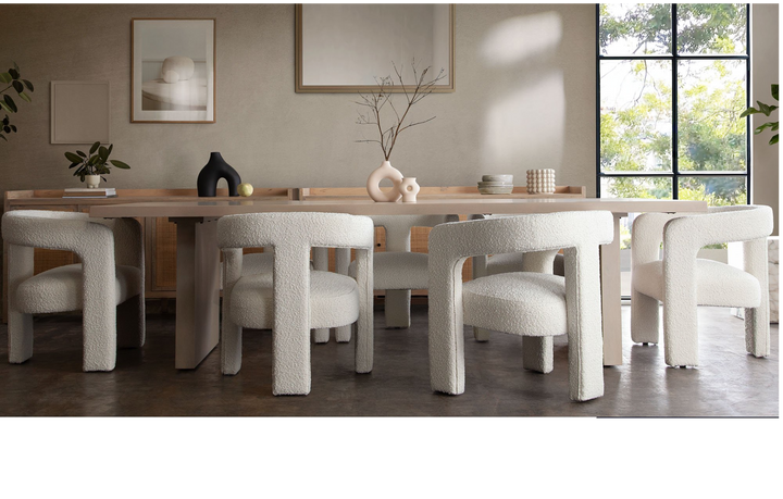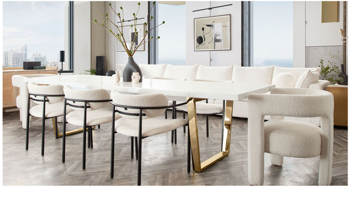 The Essence Dining/Accent Chair by Diamond Sofa brings balance to its surroundings with its design details. Curved silhouette offers comfort and its Ivory Boucle fabric cover brings a chic style to its surroundings. Ivory Boucle Fabric Seat Height 18 Inches Stylish Addition to any Room's Decor No Assembly Required
