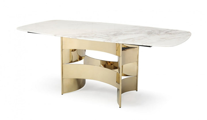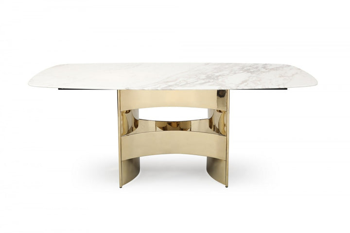 White Marble Rectangular Table Top With Rounded Edges Champagne Gold Base Some Assembly Required