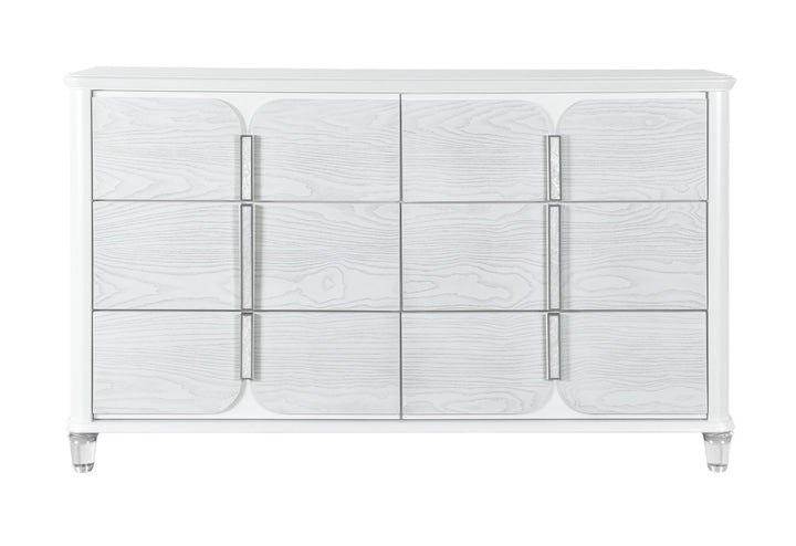 Transform your bedroom into a modern sanctuary with the Fiorenza Bedroom Set, a stunning blend of soft sophistication and contemporary flair. Wrapped in a refined light grey finish, each piece is elevated with textured drawer fronts and crystal-clear acrylic legs that bring an airy, luxurious feel to the space.