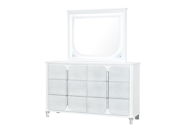 The dresser showcases wide, elegant drawers designed for generous storage. Paired with the LED-lit mirror, this combination becomes a bright and modern statement piece—ideal for a morning routine or adding soft radiance to your room.