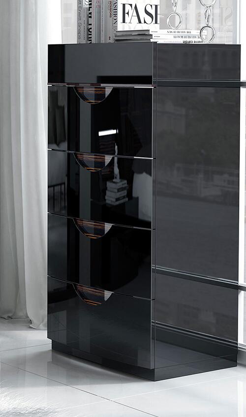 The France bedroom set will have you sleeping the night away in modern luxury. Crafted in Spain and made with solid wood materials making it very durable. This bedroom set features a stunning black lacquer high gloss finish. Each piece is accented with a stunning brown wood grain lacquer design for added style. Fenicia, Spain Black finish Made with solid wood materials Features stunning black lacquer high gloss finish Accented with stunning brown wood grain lacquer design