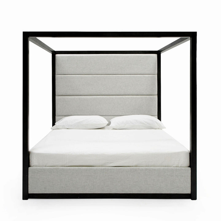 The Geneva Contemporary Canopy Grey Bed is a true statement of elegance and modern luxury. Its bold canopy frame in a rich cherry finish offers an inviting architectural presence, while the light grey upholstered headboard brings a soft, serene contrast. The combination of solid wood craftsmanship and refined upholstery creates a bed that exudes sophistication and comfort, transforming any bedroom into a tranquil sanctuary. Perfect for the discerning homeowner, the Geneva elevates the art of restful living, blending style and relaxation in a timeless design.