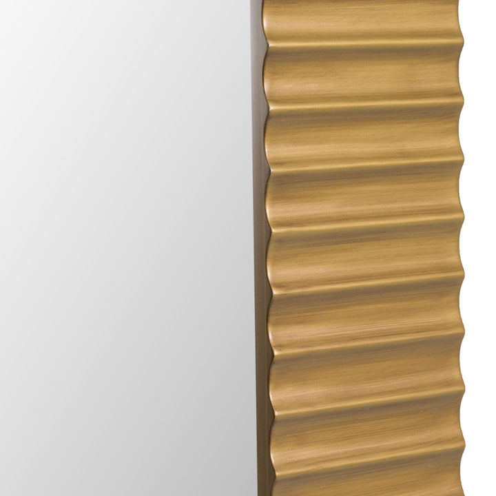 The Glenn Mirror will make a wonderful addition to your home! The rectangular frame of the mirror has a clean matte painted finish with a simple wave pattern. This mirror can either be mounted on the wall to add elegance to any wall space or can be placed on the floor and leaned against a wall. The Glinda is available in Beige, Pearl white and Brushed Brass finishes.