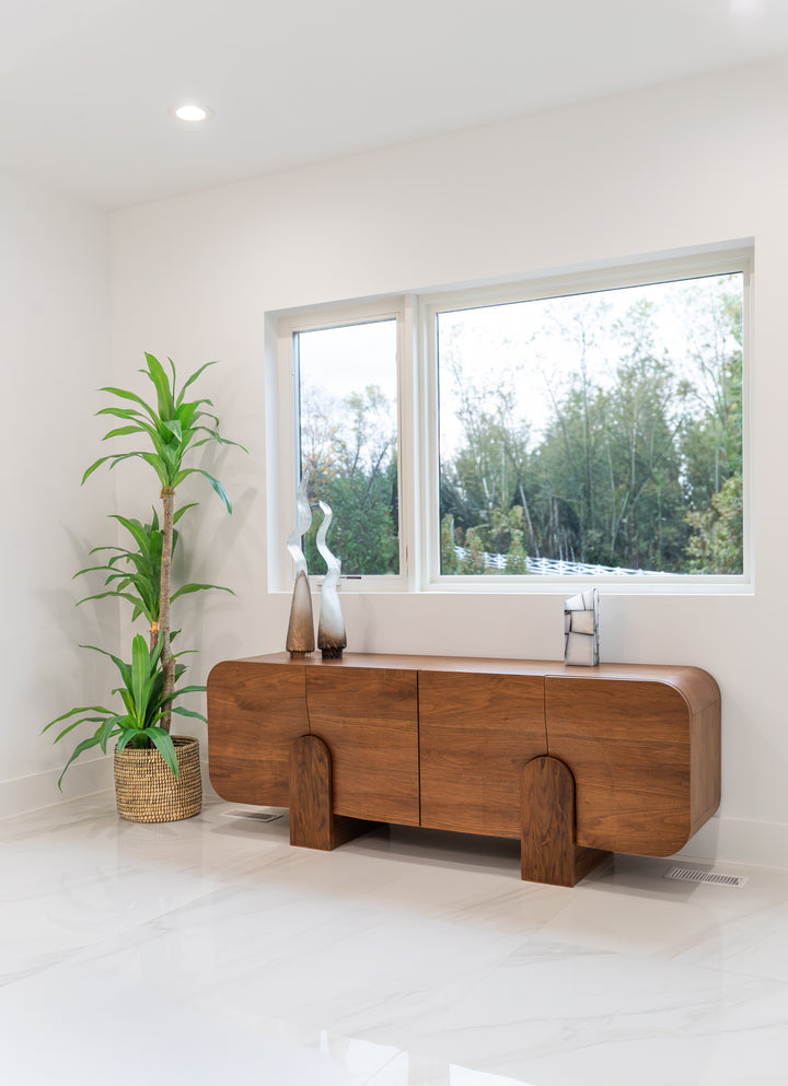 The Great Falls Natural Walnut Buffet brings sculptural elegance and practical storage to your dining or living space. Its minimalist design is defined by rounded corners, clean lines, and unique arched base panels, creating a bold, architectural look without sacrificing warmth.