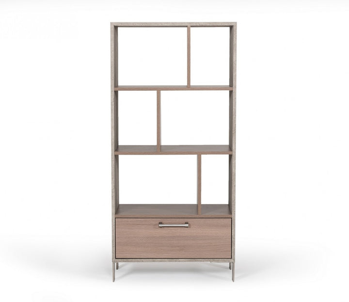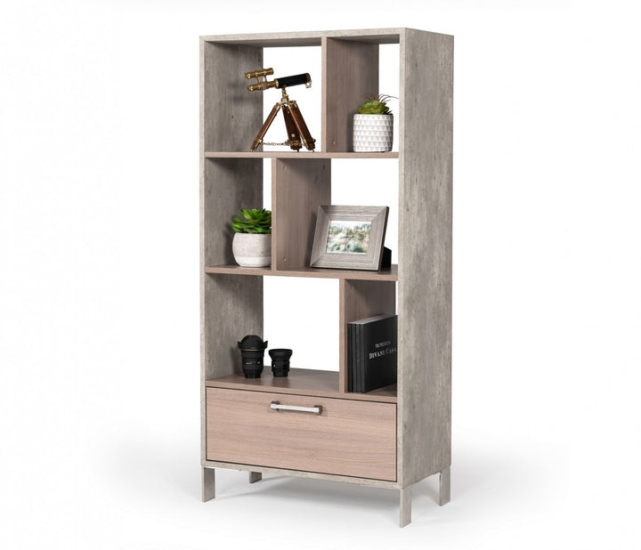 If you love combining rustic and industrial elements into your home, you'll love the Harvard Modern Brown Oak and Faux Concrete Bookcase. Featuring one soft-closing drawer, faux concrete laminate finish and brown oak laminate shelves and drawer front, this piece is as stylish as it is functional. The brushed stainless steel legs and handle add a timeless element to the design. Store your books, plants or pictures on the sturdy shelves and admire how great they look. The neutral design of this piece will pair nicely with almost any existing decor and furniture, meaning you won't have to redo your whole space when you bring it home. Pair with other items from the Harvard collection for a cohesive design. Faux Concrete Laminate Finish Brown Oak Laminate Shelves Drawer Front 1 Soft-Closing Drawer Brushed Stainless Steel Legs Handle Assembly Required nbsp; nbsp;