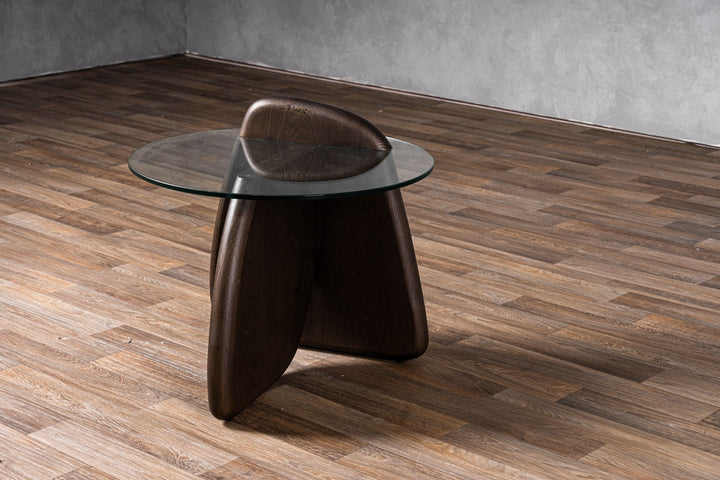 The Jacobsen End Table is a stunning addition to any living space. Its solid ash and manufactured wood base provides stability and durability. The dark walnut veneer adds a touch of sophistication, while the clear tempered glass top showcases its minimalist design. Supported by sleek cross legs, this round coffee table effortlessly complements mid-century modern aesthetics. Perfect for displaying decor or holding your favorite book and a cup of coffee!