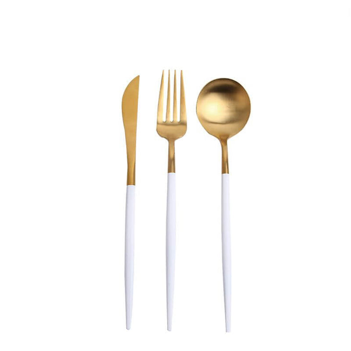 Lotte Luxury Matte Gold White Cutlery Set Spoon Fork Knife - 18 Piece