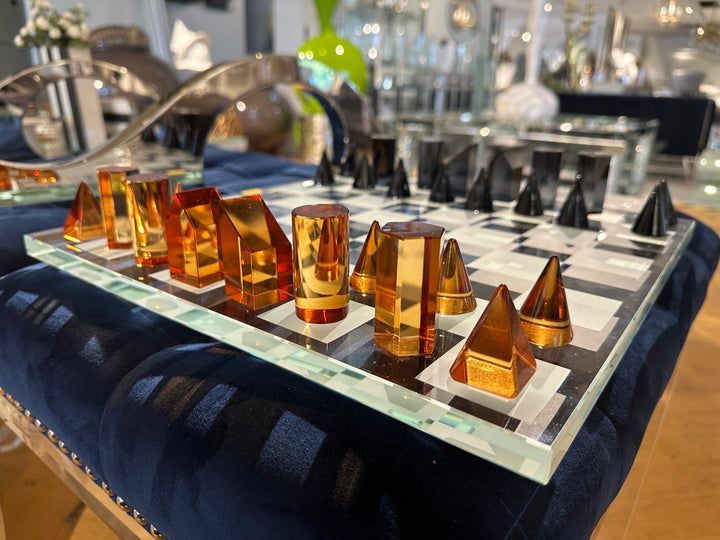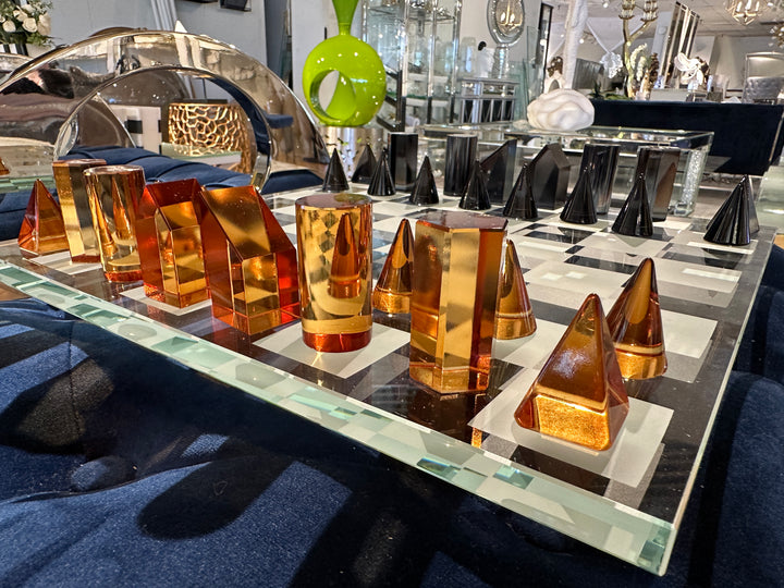 This large lucite chess set is a beautiful statement piece that is sure to add a touch of modern elegance to your home décor. *Product Color May Slightly Vary Due to Photographic Lighting