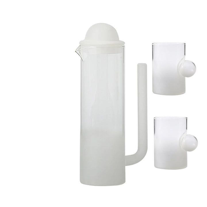 A tall and thin glass pitcher with a snow white glass lid and handle- - a subtle and elegant design feature * Product Color May Slightly Vary Due to Photographic Lighting