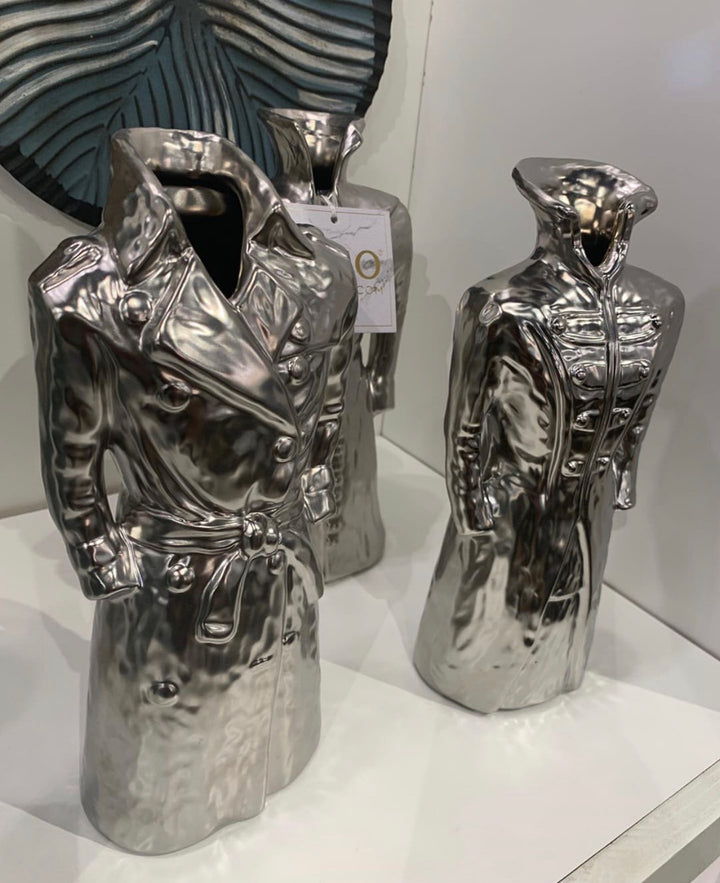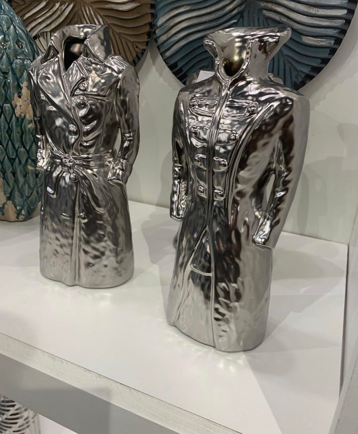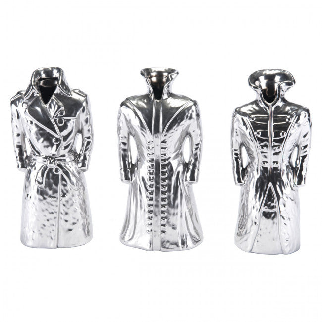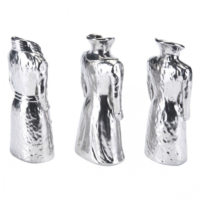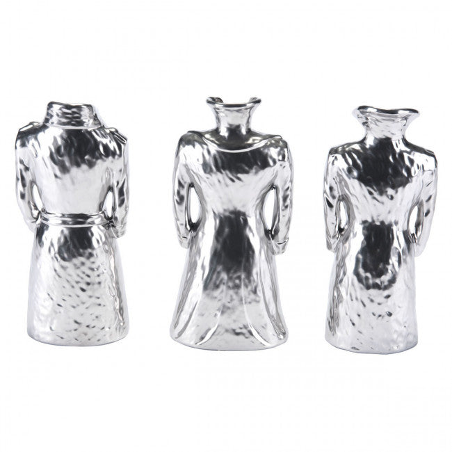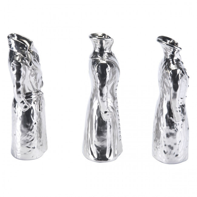 These buttoned-up sculptures will attract attention when placed on a desk, bookshelf or accent table. Their bright matte silver finish brings a modern sensibility to their tailored appearance. Display them together or scatter them about.
