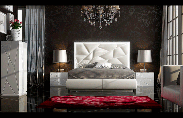 The Mikonos beauty of modern bedroom set. This set will be perfect for your modern designed bedroom. Eco Leather: Star Nube (white finish) Constructed from durable wood and wood products and overlaid with intricate fancy melamine Eco Leather: Star Nube (white finish) Bed features light Made in Spain