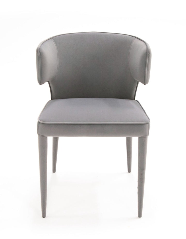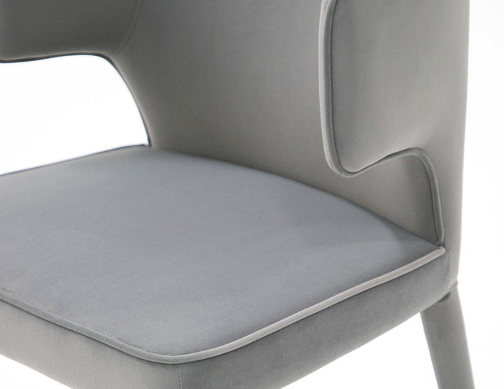 Milan Grey Velvet Arm Dining Chair is a stunning combination of contemporary design, luxurious comfort, and practicality. Its grey velvet upholstery, sleek metal frame, and thoughtful details create a visually captivating and inviting seating option.Versatility is another key feature of this dining chair. Its sleek and compact design makes it suitable for both small and large dining spaces making every dining experience a memorable one.