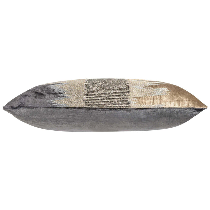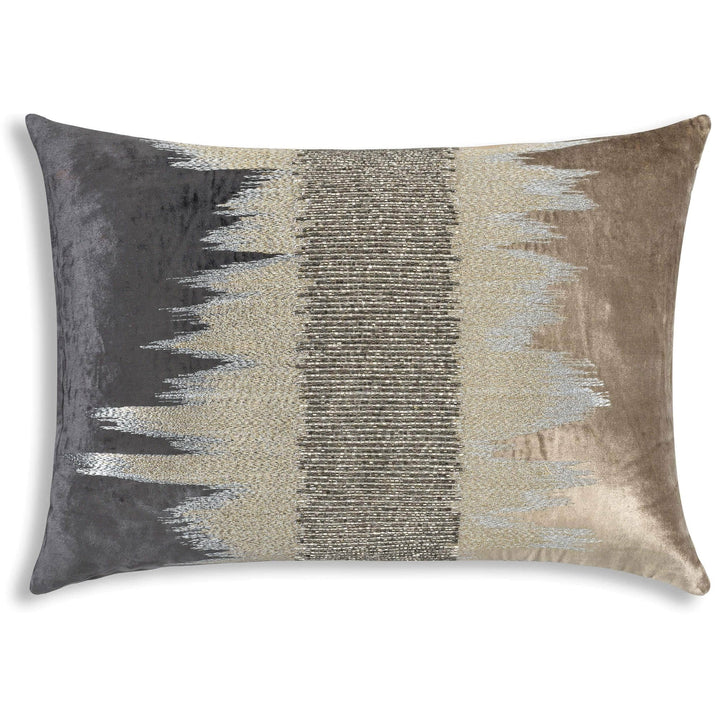 The Mira Pillow has an beige and charcoal ombre appearance that adds sophistication to any home decor.