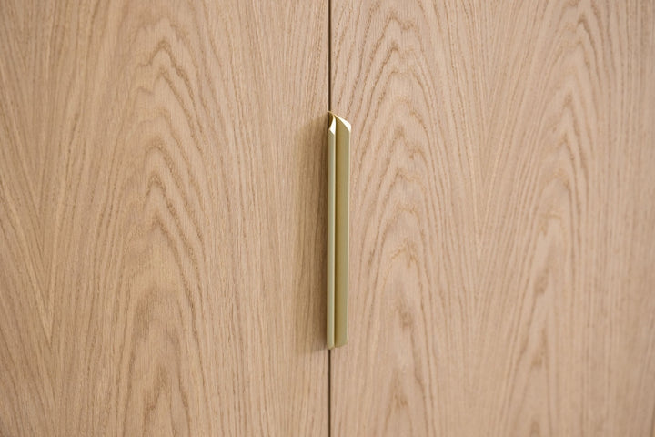 2 Door Rounded Tall Buffet Chipboard Veneer Oak 3 Adjustable Shelves Included Taper Legs Some Assembly Required