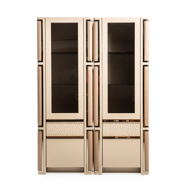 The Montclair Classic Set features a stunning leather and hammered wood sofa, accented with plush velvet pillows, Palladium White Gold touches, and mirrored details. A bold centerpiece, the smoked amber glass coffee table completes the set with refined sophistication. Crafted for those who appreciate artful design and opulent living.
