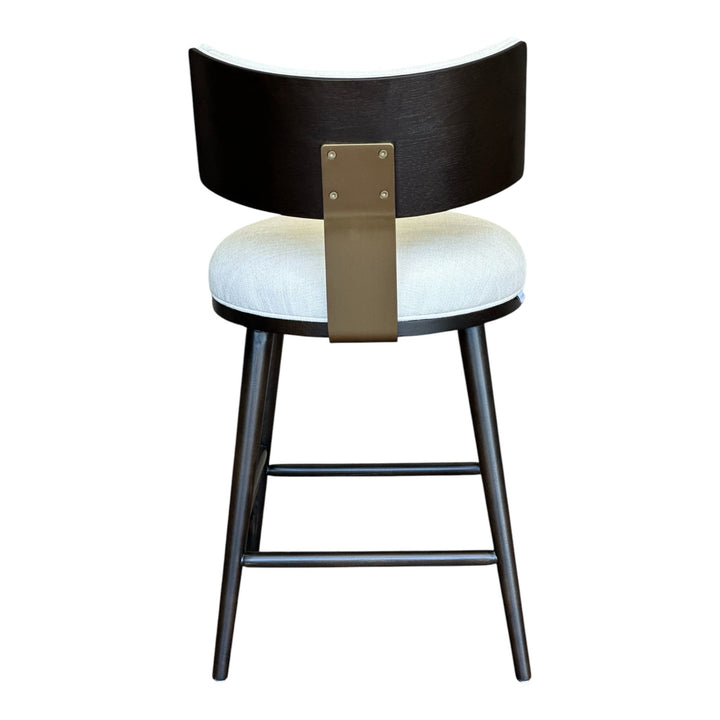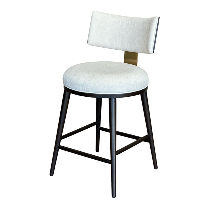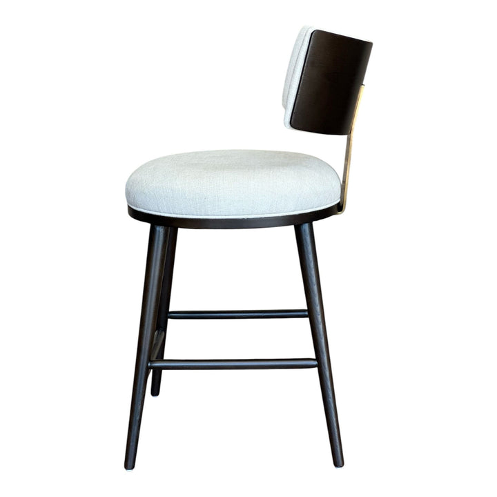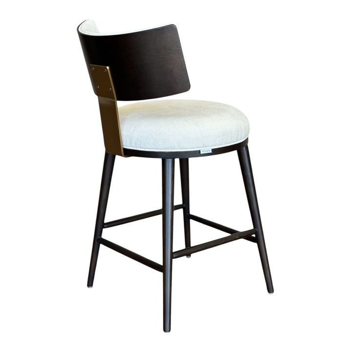 The Mystic Dawn Counter Stool features a sleek black ash wood frame with brass accents, a curved plywood backrest, and a plush neutral seat. With its serene silhouette and refined details, it’s the perfect blend of modern design and quiet sophistication—ideal for kitchen islands or elevated interiors.