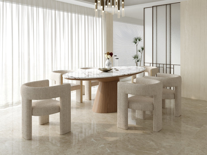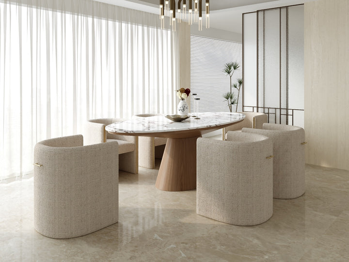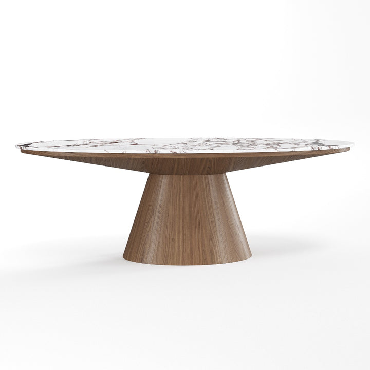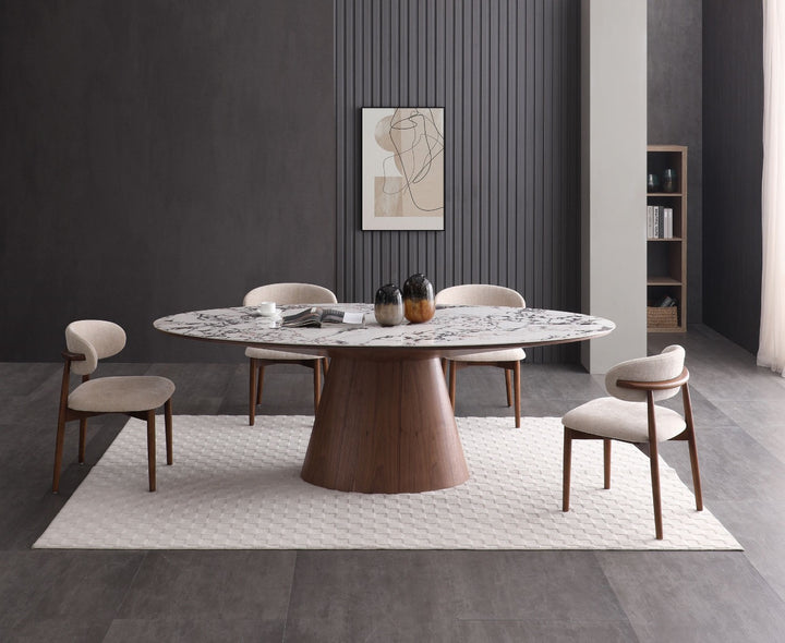 90.5" Orbital Oval Ceramic and Walnut Dining Table