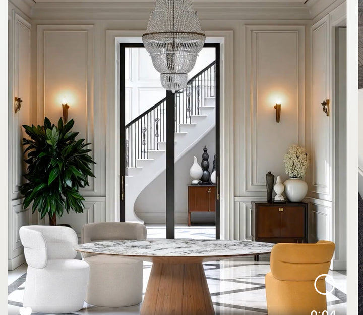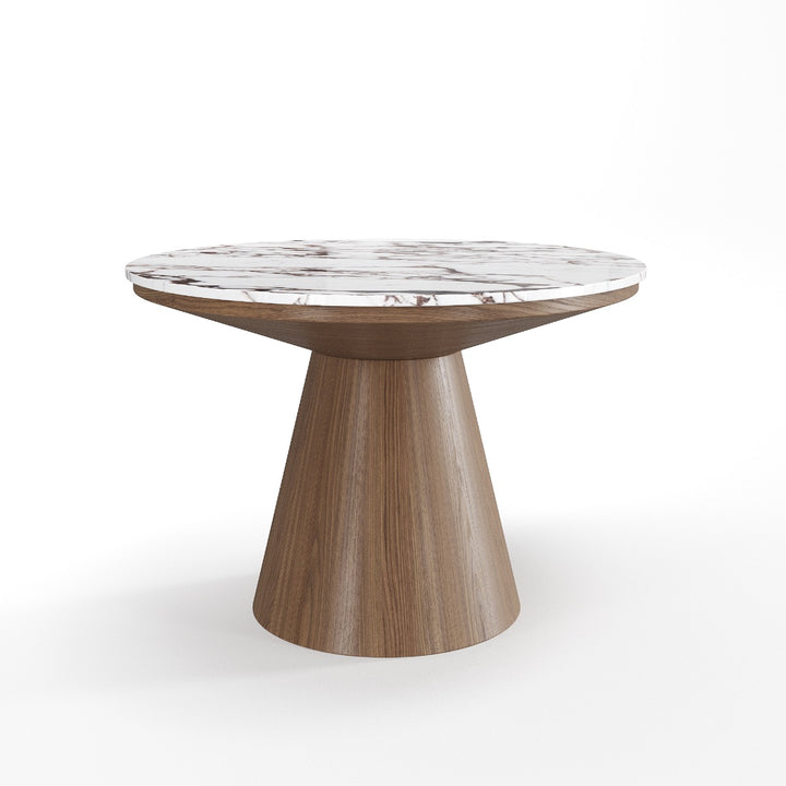 Introducing our luxurious and exclusive dining table in glossy arabescato ceramic and walnut veneer. Measuring at 90.55" x 43.3 x 29.9"H, this table is the perfect size for hosting elegant dinner parties. With a sleek and sophisticated design, it will elevate any dining experience.