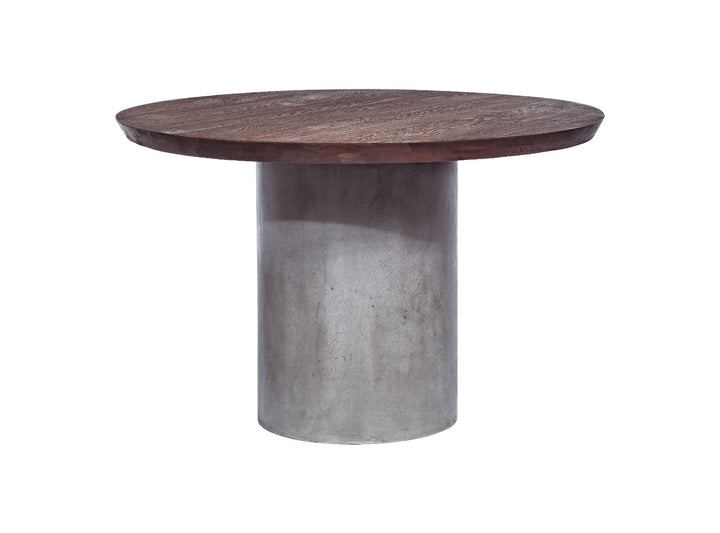 Transform your dining space with the Palermo Modern Round Oak & Concrete Dining Table. Featuring a round Heritage Oak tabletop, this elegant piece adds a touch of sophistication to any dining room or patio. Its sturdy, dark grey, fiber-reinforced natural concrete base ensures both stability and durability, designed to withstand various elements. With a 47-inch diameter, the Palermo table comfortably seats four, making it perfect for intimate gatherings or a small buffet party. Bring both style and functionality to your home with this versatile, contemporary design.