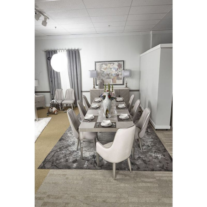 A step into refinement. The Penthouse Collection Side Chair is made with elegant channel tufting on the backrest, beautiful acrylic legs, and hints of Silver Mist to brighten your home design.