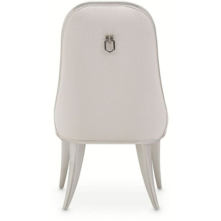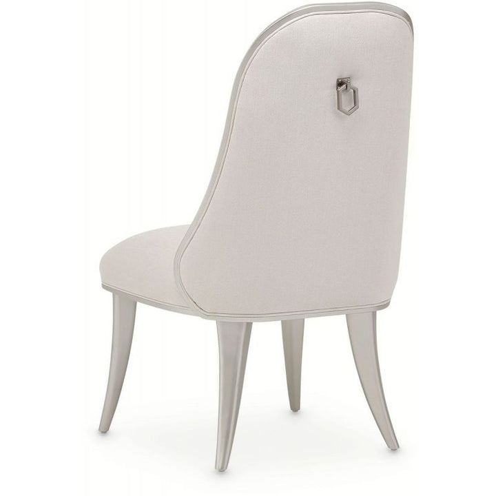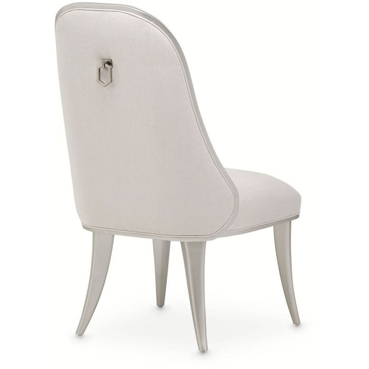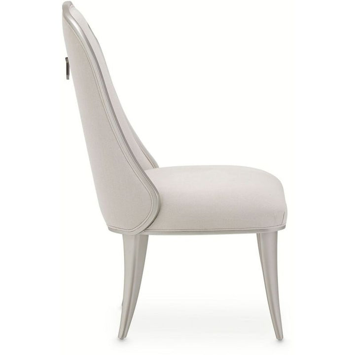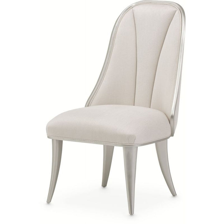 A step into refinement. The Penthouse Collection Side Chair is made with elegant channel tufting on the backrest, beautiful acrylic legs, and hints of Silver Mist to brighten your home design.