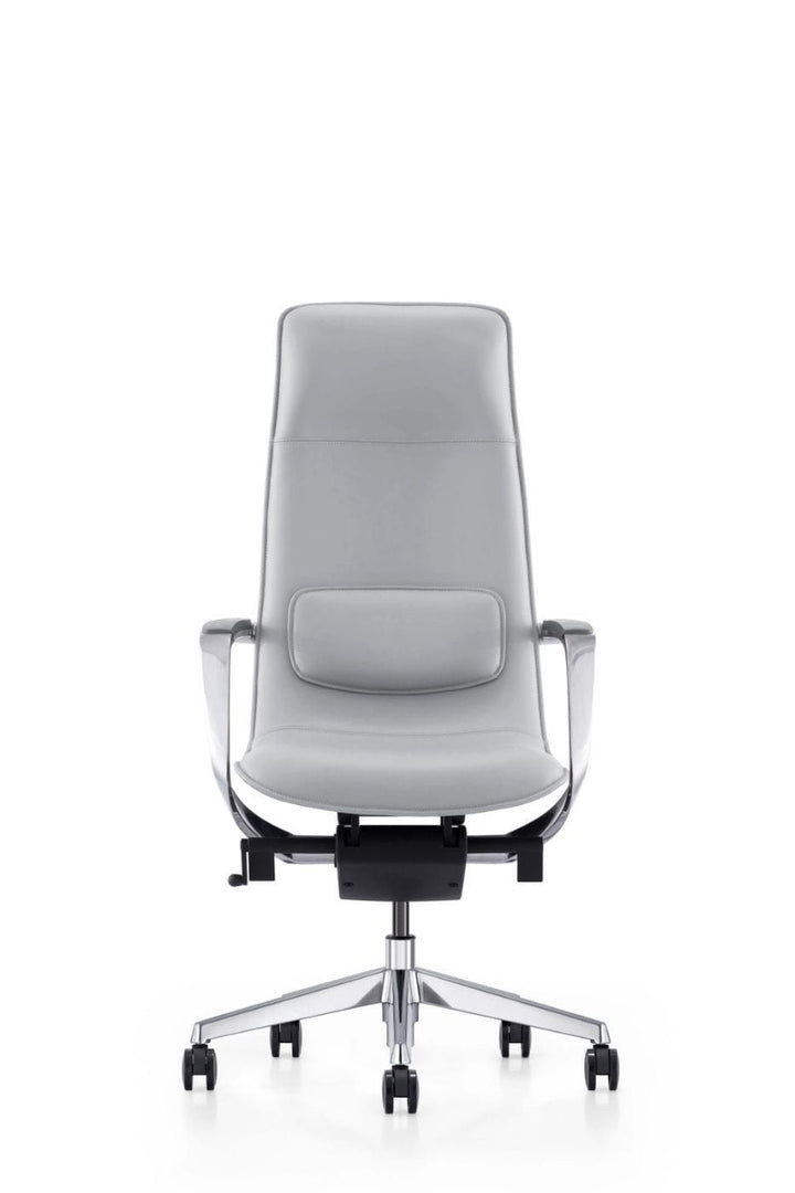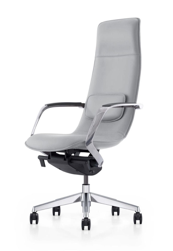 The Proctor is an extremely stylish office chair that has all the features that you would expect from a comfortable seating option. This grey leather office chair offers essential customization like an adjustable height, recline, and carpet rolling wheels. The curved seat and lumbar pillow create a perfectly ergonomic shape for your long work binges. Sure to fit any style, the high back gives an executive feeling while the simple upholstery offers contemporary style.
