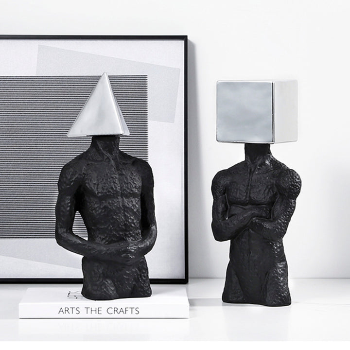 The Pyramid Hero is a whimsical sculpture created from Resin with a Chrome geometric head. The exaggerated texture of the body with the juxtaposition to the smoothness of the head makes it the perfect conversation piece!