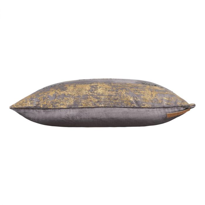 Raina charcoal pillow with gold foil brushstrokes and hand embellished sequins. Disclaimer : Product color may slightly vary due to photographic lighting sources or your display settings. Please follow specific care instructions.