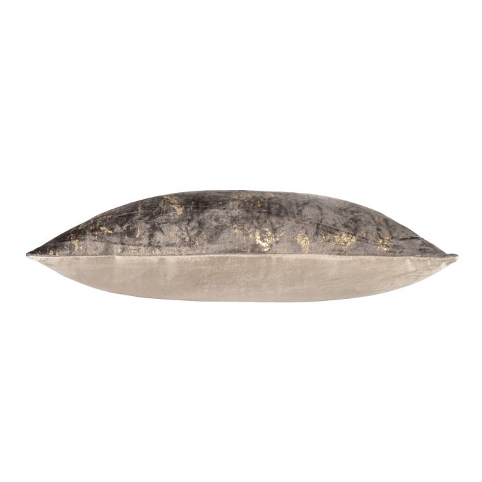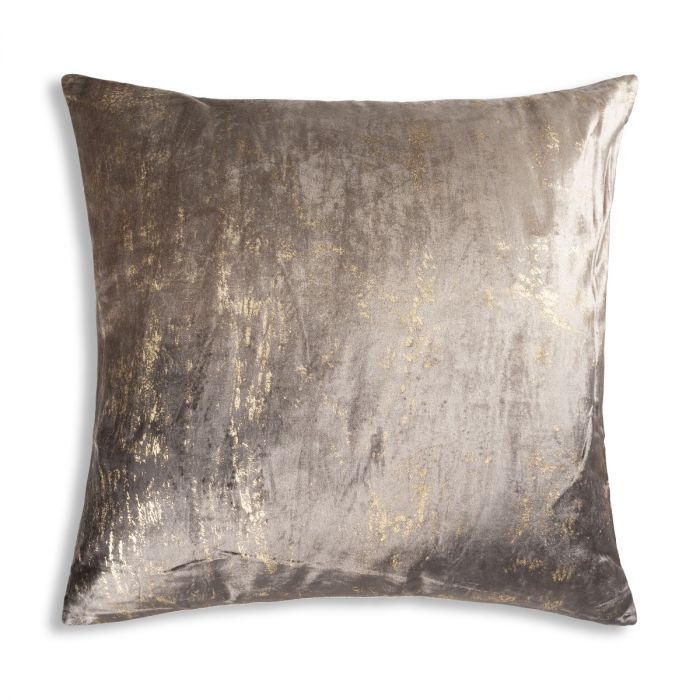 Raina ombre charcoal stone pillow with gold brushstrokes vertically through the pillow. Disclaimer : Product color may slightly vary due to photographic lighting sources or your display settings. Please follow specific care instructions.