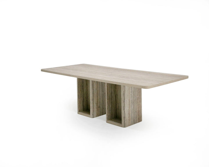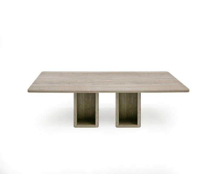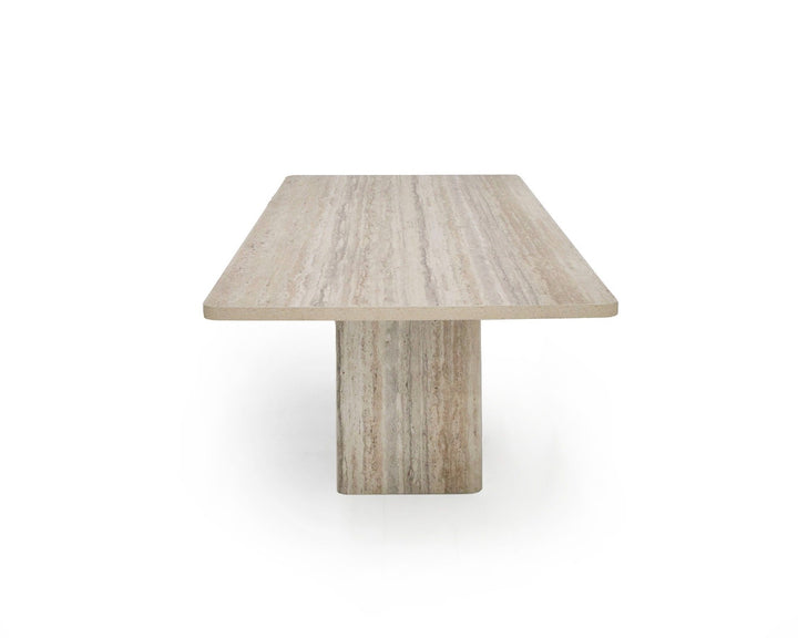 The Roma collection features a stylish, uniform travertine stone finish, creating a sophisticated aesthetic for its pieces. The rectangular dining table is a solid singular piece to be placed in the center of your living space, making it both attractive to the eye and functional. It seats up to eight comfortably. The other pieces in the Roma collection include a rectangular coffee table, round coffee table, square coffee table, square end table, round end table and more!