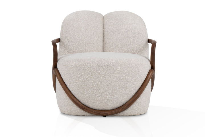 Shane - Mid-Century Modern Off-White Fabric + Walnut Accent Chair