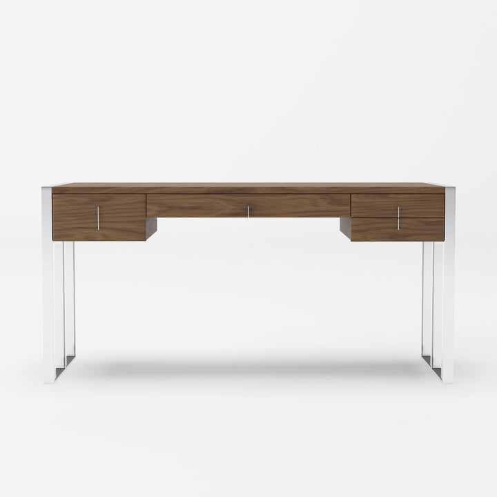 The Soho Desk has a contemporary feel with the American walnut top and drawers with two squared stainless steel legs on either side. There are four drawers and plenty of legroom.